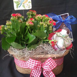 Price: $85.00Blooming plant with gifts